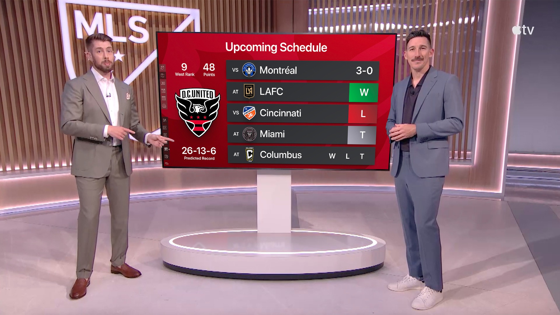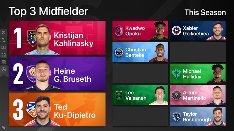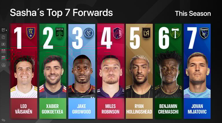 El desafío era diseñar y estructurar un paquete de 20+ piezas gráficas interactivas de alto rendimiento para uso en vivo. El objetivo es proporcionar a los presentadores una herramienta dinámica que permita desglosar la complejidad del juego (táctica, alineaciones y predicciones) de manera visualmente atractiva para la audiencia de los programas deportivos de la MLS en Apple TV.