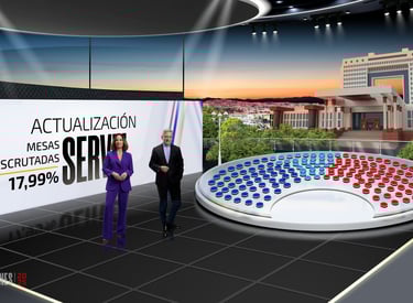 El desafío consistió en posicionar al canal como líder de audiencia durante la noche de las Elecciones Presidenciales de 2025, mediante la utilización de un estudio desprovisto de escenografía física convencional, compuesto únicamente por un videowall de 10 metros de ancho por 3 metros de alto, con paredes recubiertas en telas opacas de color negro y suelos pintados en el mismo tono para optimizar la integración de elementos virtuales.