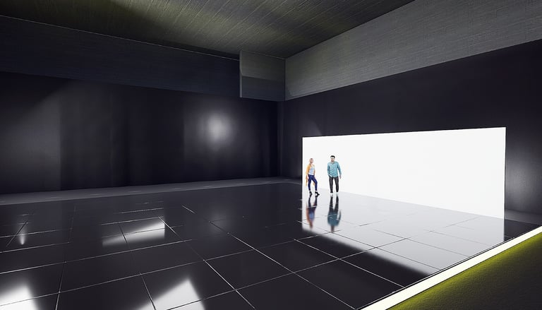 Optamos por implementar la tecnología de Realidad Extendida (XR) con el objetivo de desarrollar un entorno virtual inmersivo de 360 grados en torno a la pantalla física, integrando esta última como un componente esencial en la escenografía virtual. Esta aproximación permite la generación de espacios expansivos e infinitos, utilizando la pantalla real para la presentación de secuencias de apertura, páginas de títulos y visualizaciones gráficas de resultados en tiempo real.